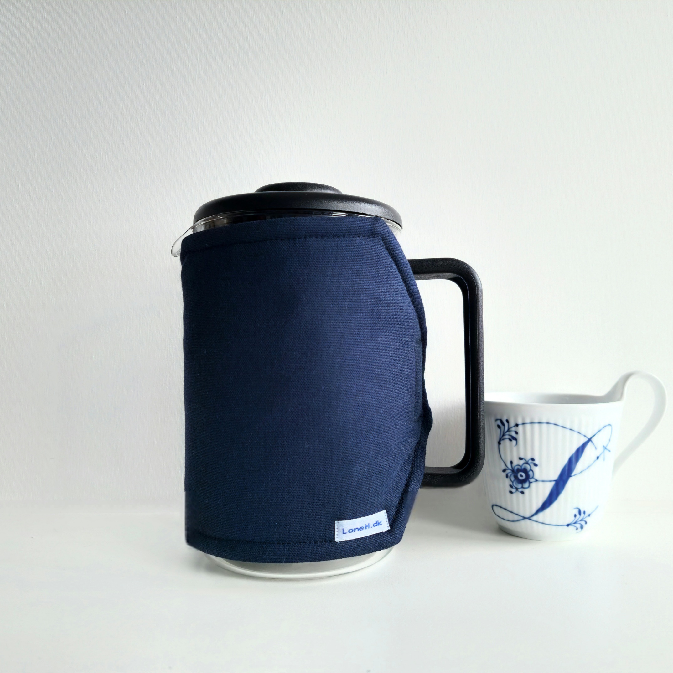 Blå kaffevarmer til 1½ liter stempelkande – smuk, praktisk og perfekt til morgenbordet